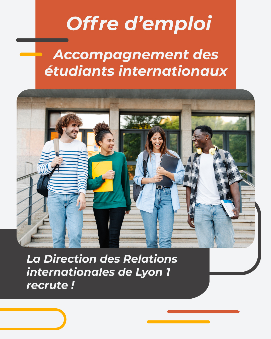 - Quoi ? La Direction des Relations Internationales de Lyon 1 recrute 20 étudiants vacataires pour être tuteurs internationaux pour l’année 2025-2026 pour animer des visites de campus pour les étudiants internationaux, organiser et participer à des sessions d’échanges et ateliers de bonnes pratiques, contribuer aux événements dédiés : accueil, Erasmus Days, journées d’intégration, relayer l’information internationale sur Instagram, réseaux étudiants, etc, proposer des idées pour améliorer l’accueil des étudiants étrangers. Disponibilité : au moins 10 heures par semaine jusqu’à fin mai. Rémunération : 13,07 €/heure