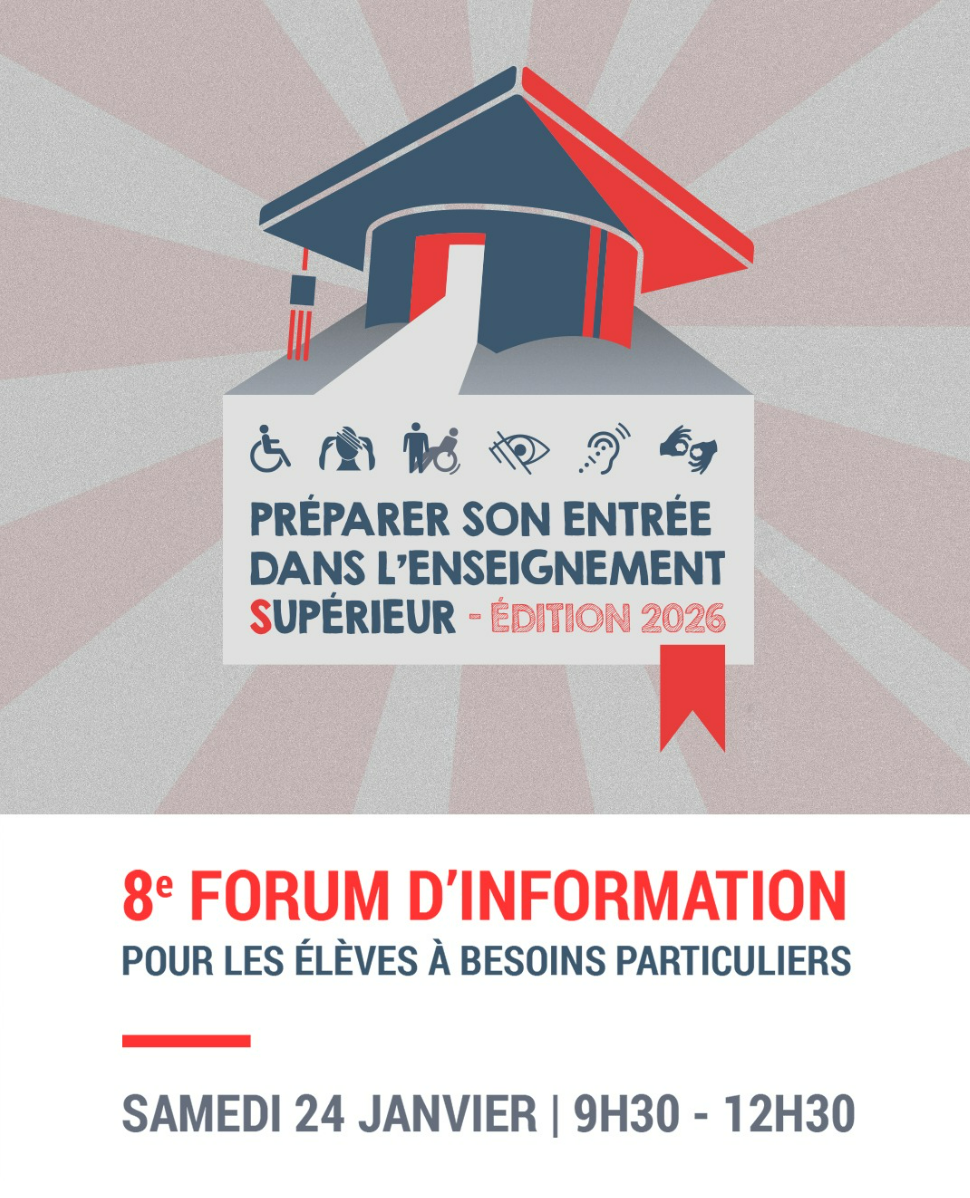 Le forum « Préparer son entrée dans l’enseignement supérieur » s’adresse aux élèves de Première ou Terminale en situation de handicap (PPS) ou bénéficiant d’un accompagnement personnalisé (PAP ou PAI). L’événement a pour objectif :