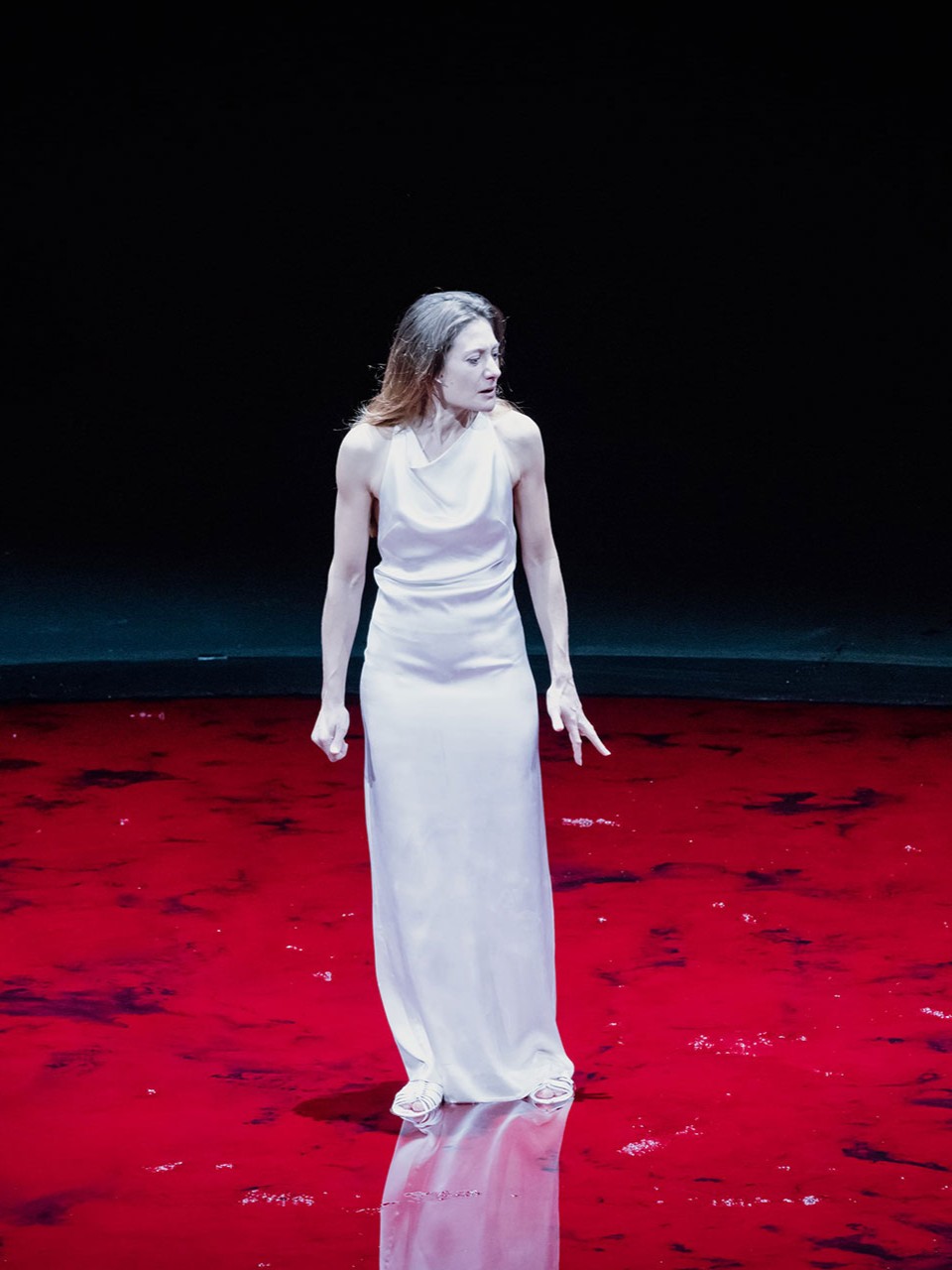 Avec le vocabulaire actuel, cela revient à comprendre comment le stress post-traumatique peut mener au désir de vengeance et parfois au viol. Dans une vaste étendue de sang, assis simplement à une table ou tentant de tenir debout, les huit personnages, dont Andromaque interprétée par Bénédicte Cerutti, semblent se débattre dans une histoire qui les dépasse. Une histoire qui impactera les générations suivantes. Le metteur en scène le montre en respectant la grande finesse de la structure en alexandrins, avec le souci constant de relier les classiques à notre époque.