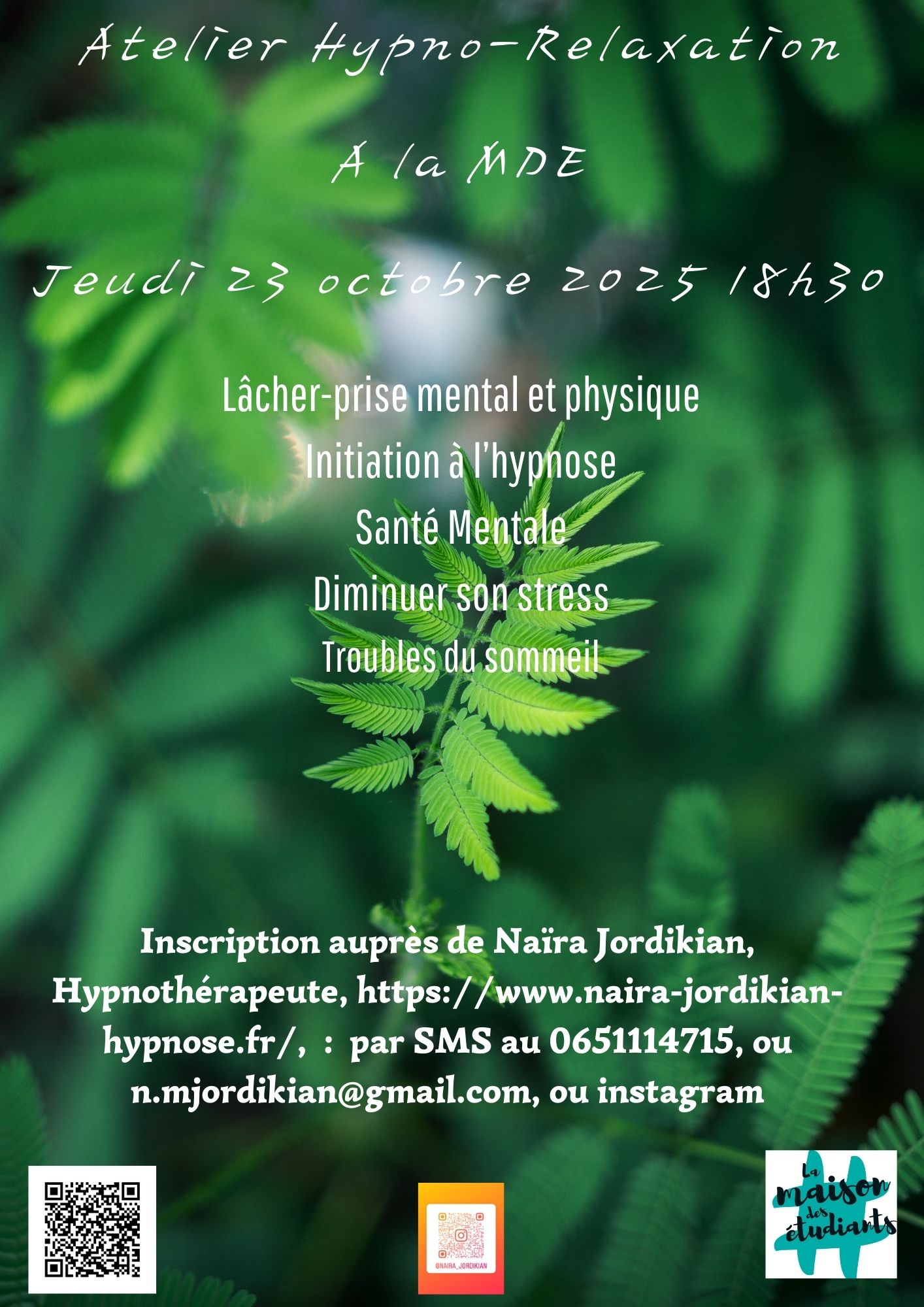 Profitez d'un atelier d'hypno-relaxation pour travailler sur le lâcher-prise mental et physique, diminuer son stress dans un environnement bienveillant.