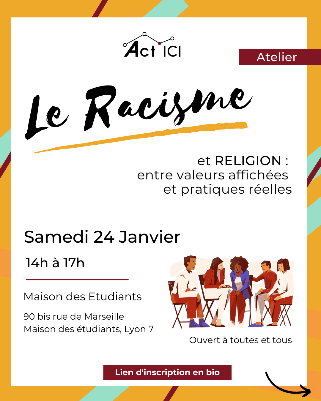 Act’ICI vous invite à un atelier participatif pour questionner, comprendre et échanger autour des liens entre racisme et religions, et de leurs impacts concrets sur nos vies et notre société.