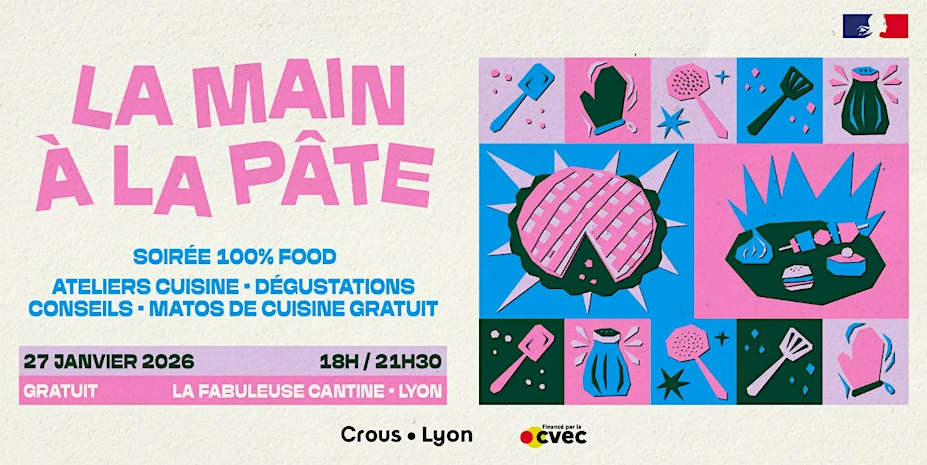 Envie de mettre la main à la pâte, de rencontrer du monde et de découvrir des astuces pour bien manger sans se ruiner ? Le Crous de Lyon t’invite à un événement unique où la cuisine devient un vrai moment de convivialité et d’inspiration !