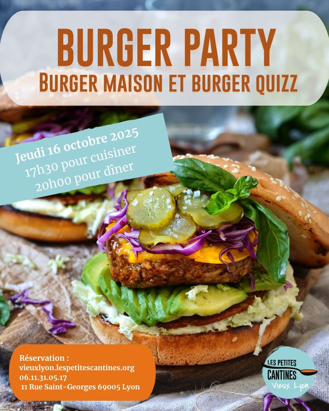 - dès 17h30, participez à la préparation de délicieux burgers végétariens, puis restez dîner.