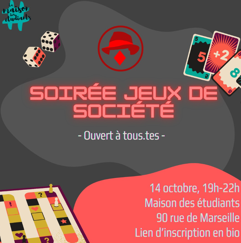 L'association étudiante Jeux Moulin Lyon 3 organise une soirée jeux le mardi 14 octobre à la Maison des étudiants.