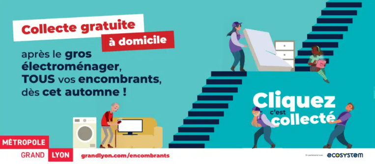 - Ecosytem propose un service gratuit de collecte à domicile des gros appareils électroménagers usagés dans les 58 communes de la Métropole de Lyon pour offrir une seconde vie à ces appareils ! Prenez rendez-vous sur www.jedonnemonelectromenager.fr.